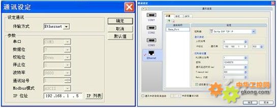 由于本次HMI(DOP-B10E615)应用跟PLC(DVP28SV00R)通讯走的是Ethernet,因此我们需设置HMI跟PLC所对应的IP地址(DVPEN01-SL默认网关为192.168.1.5)。通讯设置见图7。