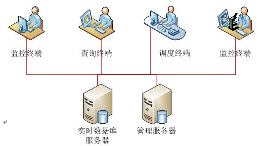 服务端包括:实时数据库服务器和管理服务器;实时数据库服务器负责生产工艺数据的存储、工艺画面组态等,管理服务器负责系统权限管理,关键数据的存储及汇