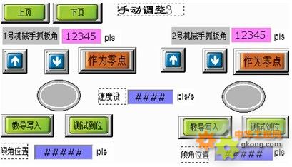 图4、图5、图6为触摸屏的一些画面。调整示教位置和故障检查时,可以手动下进行调整核查。