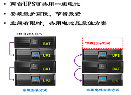当2台UPS并联时,为了降低成本及节省安装空间,UPS可共享一组电池