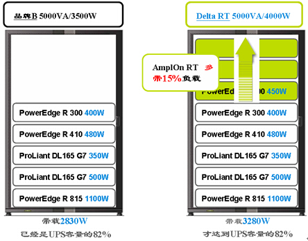 RT系列UPS的设计满足最先进的服务器负载的实际应用要求,10年前的计算机和服务器负载功率因数普遍为0.7,而当今的主流计算机和服务器功率因数均为0.8,即新负载需要的有功功率增加了,而需要的无功功率减少了。这就要求UPS必须适应这一现实情况的改变,必须要能够提供更多的有功功率KW。RT系列UPS的输出功率因数高达0.8,完全符合负载的实际要求。与传统的只有0.7输出而当功率因数的UPS相比,RT可以提供更多的有功输出,因而具有更强的带载能力。当负载功率因数降低时,RT同样能够提供满负荷容量的输出。