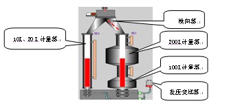 工作量器结构如图1所示。工作量器分别为:10 L、20 L、100 L、300 L四种规格,可分别检定相应标准容积的流量仪表。
