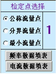 (2)检定点选择界面如图8所示。用一个单选按钮控件来实现检定点的选择[1]。控件名称:检定点选择;变量名称:检定次数;标题数据:公称流量、分界流量、最小流量。