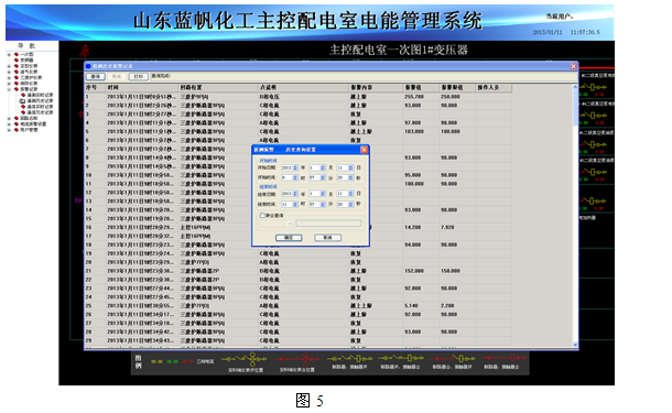 5.4 系统遥信状态报警:根据本系统的设计意图,如果重要回路或者照明回路三相中某一相电流负荷超过额定值的90%,系统必须立刻发出声光报警并弹出指示框指明报警源,提醒管理人员注意负载的三相平衡和负载率,同时自动记录事件发生的时间和回路名称,以便用户查询,追忆故障原因,如图5: