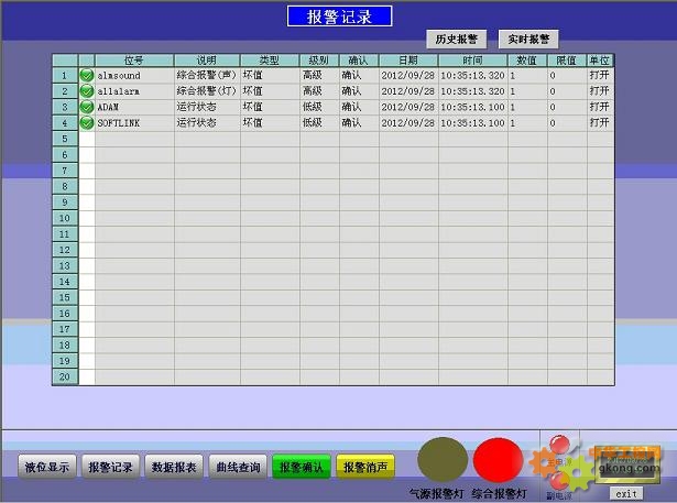 4、可根据程序进行液位高低等报警,报警时,上位机软件可进行记录、查阅。