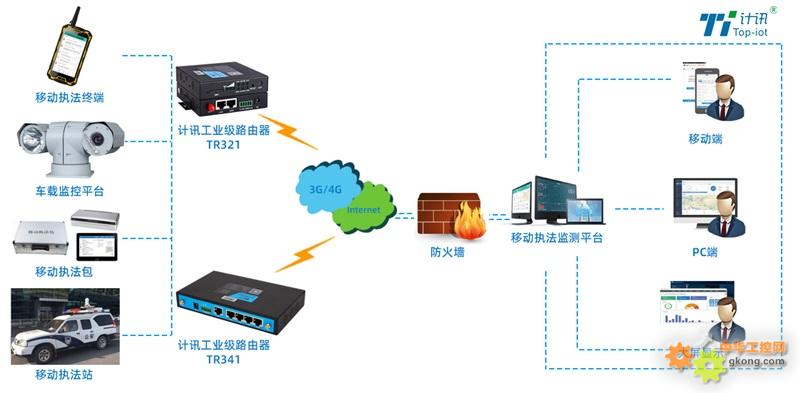 2、无线数据传输:无线通讯部分通过计讯 TR321工业级无线路由器使用3G/4G信号进行无线传输,将数据透传或者使用特殊的协议格式传送到市、县级监控平台,或发出数据交互请求。