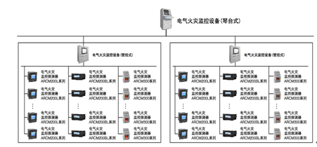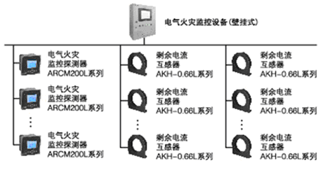 其基本原理是,当电气设备中的电流、温度等参数发生异常或突变时,终端探测头(如剩余电流互感器、温度传感器等)利用电磁场感应原理、温度效应的变化对该信息进行采集,并输送到监控探测器里,经放大、A/D转换、CPU对变化的幅值进行分析、判断,并与报警设定值进行比较,一旦超出设定值则发出报警信号,同时也输送到监控设备中,再经监控设备进一步识别、判定,当确认可能会发生火灾时,监控主机发出火灾报警信号,点亮报警指示灯,发出报警音响,同时在液晶显示屏上显示火灾报警等信息。值班人员则根据以上显示的信息,迅速到事故现场进行检查处理,并将报警信息发送到集中控制台。
