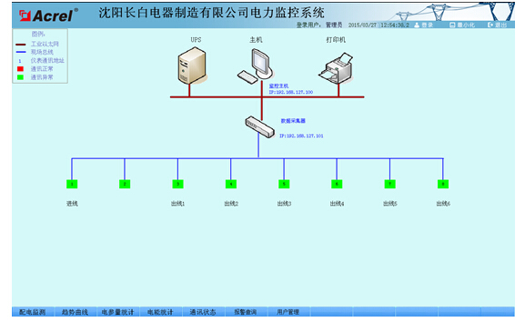 综上所述,电力监控系统帮助用电单位提高效率、减少损失、降低运营成本,电力监控系统能够有效确保电网管理效率、缩小电力运营成本,也成为供配电设计中不可或缺的重要组成部分。电力监控系统的通信、故障报警、数据存储记录等功能使得工作人员在实际工作中更加方便,可以通过人机操作界面, 直接了解到电力系统的运行状态,并能迅速传递出操作指令,由于监控设备对数据的传递都是通过网络传输来实现,因此,不同的电力监控系统可以设计不同的组网方式,确保数据信息能够迅速、精准的进行传输。另一方面,在供配电设计中运用电力监控系统,应该根据实际情况选择监控设备。一般的电力监控系统通常都采用具有远程通信、远程观测以及远程控制等功能的设备,而一些高端电力监控系统则需要选择功能更加齐全的智能设备。 在工厂建筑等场所设置电力监控系统,可以实现对厂内低压配电回路的实时监控,有利于电能管理。另一方面,电力监控系统不仅能够准确的表示出回路的用电状况,它还具备网络通讯等功能,能够与计算机、协议转换器等设备进行组合,及时的显示厂内各个配电回路的运作状态,当厂内电力系统的负载越标时、保护动作时,电力监控系统能够迅速报警,发出语音提示。另外,电力监控系统还能够生成报表、曲线图等统计信息,便于有关人员分析厂内各部分的用电状况,使厂内的用电活动更加安全,从而保证厂内人员的生命安全,提高工作人员的工作效率。