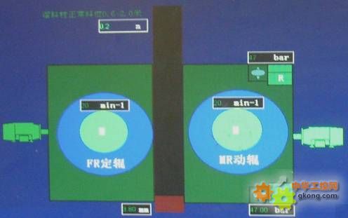 n0。变频器根据设定转速值自动调节辊轴转速稳定;动辊转速与定辊转速同步运行。变频器发出“允许加载”指令,DCS侧操作液压系统进行动辊加载。当动辊变频器检测到转矩输出达到输出要求且稳定后,变频器自动由转速闭环控制方式切换为转矩控制闭环。该控制过程由变频器内置的专属“恒转矩同步驱动负载协调控制”策略自动实现,自动平衡定、动辊的输出转矩与转速。保证辊磨机的具有良好的稳态控制精度和动态响应特性。