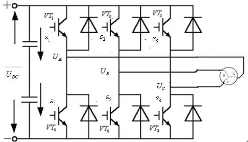 形成000、001、010、011、100、101、111共八种开关管模式,其中000和111开关模式使逆变输出电压为零,所以称这种开关模式为零状态。输出的线电压为