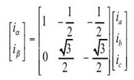 从a,b,c坐标系转换到d,q坐标系有克拉克(CLARKE)和帕克(PARK)变换来是实现;从d,q坐标系转换到a,b,c坐标系是有克拉克和帕克的逆变换来是实现的。以下是两个变换公式,克拉克变换(CLARKE):