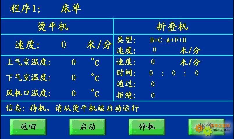 010年9月我国发布了中华人民共和国国家标准GB25225.5-2010(工业洗涤机械的安全要求-第5部分:熨平机,送料机和折叠机),这部国家标准将在2011年7月1日实施,该标准等同采用国际标准ISO10472-:1997。这就标志着我国对折叠机的安全要求,开始与国际标准安全接轨。 一、折叠机的定义 通常与熨平机相连的可自动折叠平面物料的机器或者是自动折叠毛巾、枕巾和类似物料的机器。就目前国内外所使用的折叠机而言,主要是用于对烘干或熨平后的床单,台布等平面织物进行自动折叠,或者对烘干后的毛巾、浴巾、枕巾等进行自动折叠。 二、折叠机的应用领域 广泛应用于宾馆、饭店、医院招待所、部队、学校、纺织、水洗厂、漂染厂、印染、丝绸、服装、铁路航空洗衣厂等多种行业领域全自动折叠机适用于床单、被套、台布、线毯等织品的折叠。 三、维控触摸屏工程介绍 3.1人机界面主要有:控制流程图(含实时数据)、实时报警、历史报警、数据统计、编程界面、状态监控、参数设置。 3.2“参数设置”内可以对变频器等的控制值、显示单位修改,可以输入人工数据,程序手动编程。 3.3折叠设备加工过程的流程图、动态模拟装置。 四、维控触摸屏程序的实现 3.1监控中心界面
