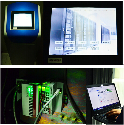 某国有大型银行数据中心坐落于上海浦东,中心使用高端的大型计算机进行金融交易数据的处理,因此对环境温度,环境湿度,空气洁净度,供电电压都有较高的要求。这就需要一套稳定可靠的机房监控系统与之配套,此次采用了倍福产品作为机房监控系统的主控。客户共有四个大小不等的机房,每个机房都使用一台BeckhoffCX5000系列控制器,机房占地面积大,各个设备布局分散,倍福的分布式IO将各个硬件设备的监控点连在一起,通过EtherCAT总线将这些采集的数据传至CX5000嵌入式PC,进行运算处理。